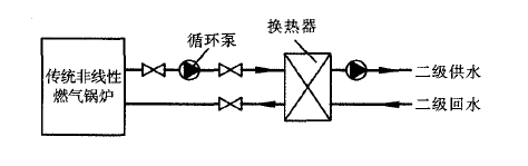 鍋爐自動(dòng)控制系統(tǒng)根據(jù)設(shè)計(jì)室內(nèi)溫度及實(shí)際室外溫度計(jì)算出二級(jí)供水溫度,將計(jì)算二級(jí)供水溫度與實(shí)際二級(jí)供水溫度進(jìn)行比較,由鍋爐自動(dòng)控制系統(tǒng)控制鍋爐的熱功率,使得實(shí)際二級(jí)供水溫度接近計(jì)算二級(jí)供水溫度。
