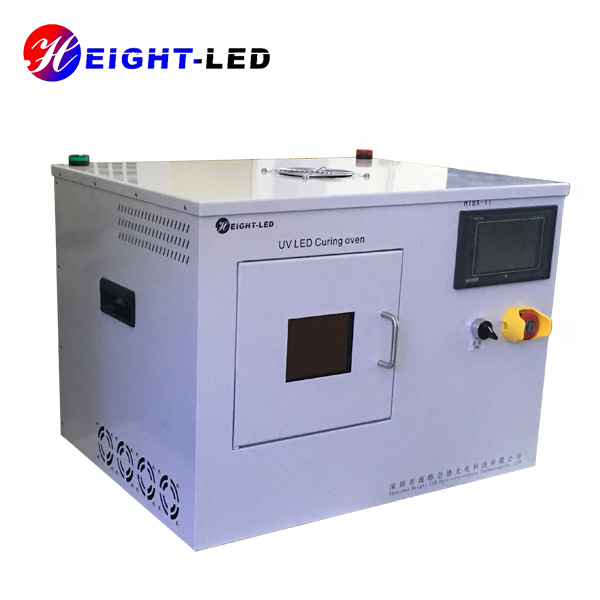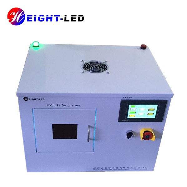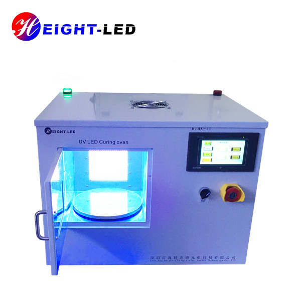 一款針對(duì)UV膠粘劑固化設(shè)計(jì)的高性能UVLED光固化系統(tǒng),該系統(tǒng)采用箱式結(jié)構(gòu)內(nèi)部放置UVLED照射頭及控制板,外加可透視窗口。共有兩個(gè)出光面,頂部出光面積200X200mm,側(cè)面出光面積為150X120mm,UV光譜波長(zhǎng)為365nm,采用強(qiáng)制水冷散熱,支持外部信號(hào)輸入及觸發(fā),箱門處裝有傳感器,關(guān)門燈亮關(guān)門即滅,底部裝有轉(zhuǎn)盤,可根據(jù)需要調(diào)整轉(zhuǎn)速,保證受光均勻度及異型件側(cè)面點(diǎn)膠位置的UV固化能夠充分進(jìn)行。
