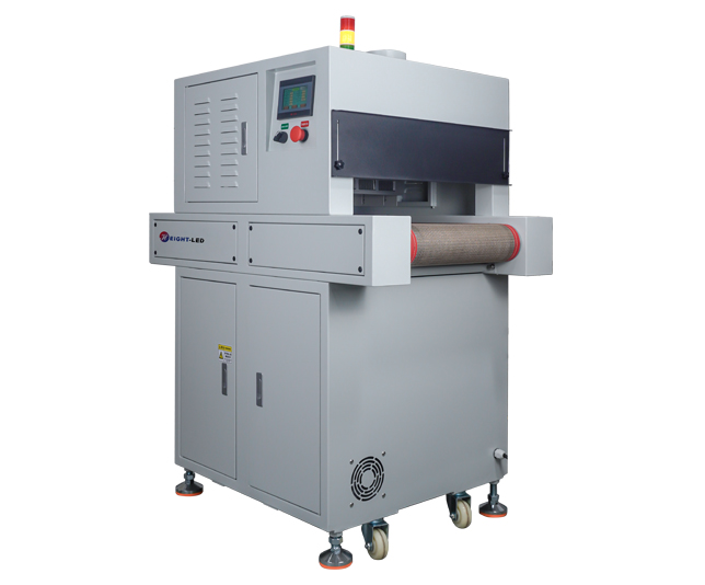 2、uv固化機(jī)設(shè)備提供連續(xù)模式和固定照射模式可選,連續(xù)模式下,點(diǎn)擊啟動(dòng)按鈕,UV機(jī)傳送帶及UVLED一直工作,點(diǎn)擊停止按鈕停止UV機(jī)工作;固定照射模式下,點(diǎn)擊紫外線uv固化機(jī)啟動(dòng)按鈕,UV機(jī)傳送帶開始工作,當(dāng)物料檢查傳感器感應(yīng)到產(chǎn)品后,傳送帶停止,UVLED開始照射并計(jì)時(shí),計(jì)時(shí)到后,傳送帶啟動(dòng),N秒內(nèi)沒有檢查到產(chǎn)品(時(shí)間可設(shè)),UVLED關(guān)閉,否則UVLED保持運(yùn)行。