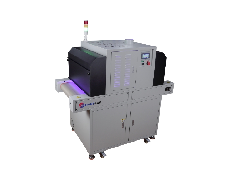 2. 設備提供連續(xù)模式和后端模式可選,連續(xù)模式下,點擊啟動按鈕,UV機傳送帶及UVLED一直工作,點擊停止按鈕停止UV機工作;后端模式下,點擊啟動按鈕,UV機傳送帶及UVLED開始工作,當后端傳感器感應到產(chǎn)品后,傳送帶及UVLED停止工作,當產(chǎn)品拿走后繼續(xù)進入下一個循環(huán)。
